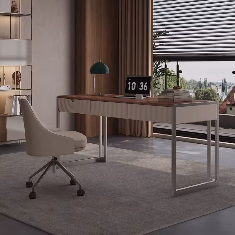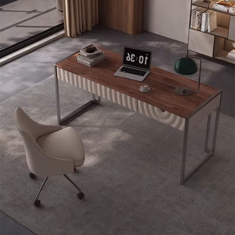 現代辦公室設計實木書枱展現出簡約而不失奢華的風格。這款書桌不僅提供寬敞的工作空間,還能為你環境增添一絲優雅。無論是居家辦公或企業使用,都是提升工作效率與美感的理想選擇。