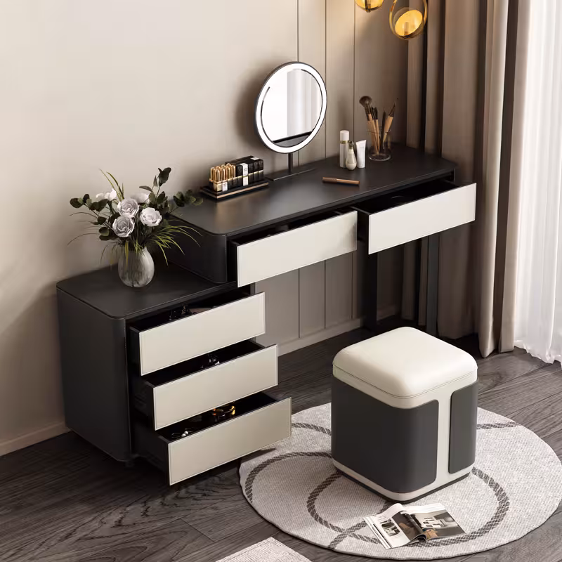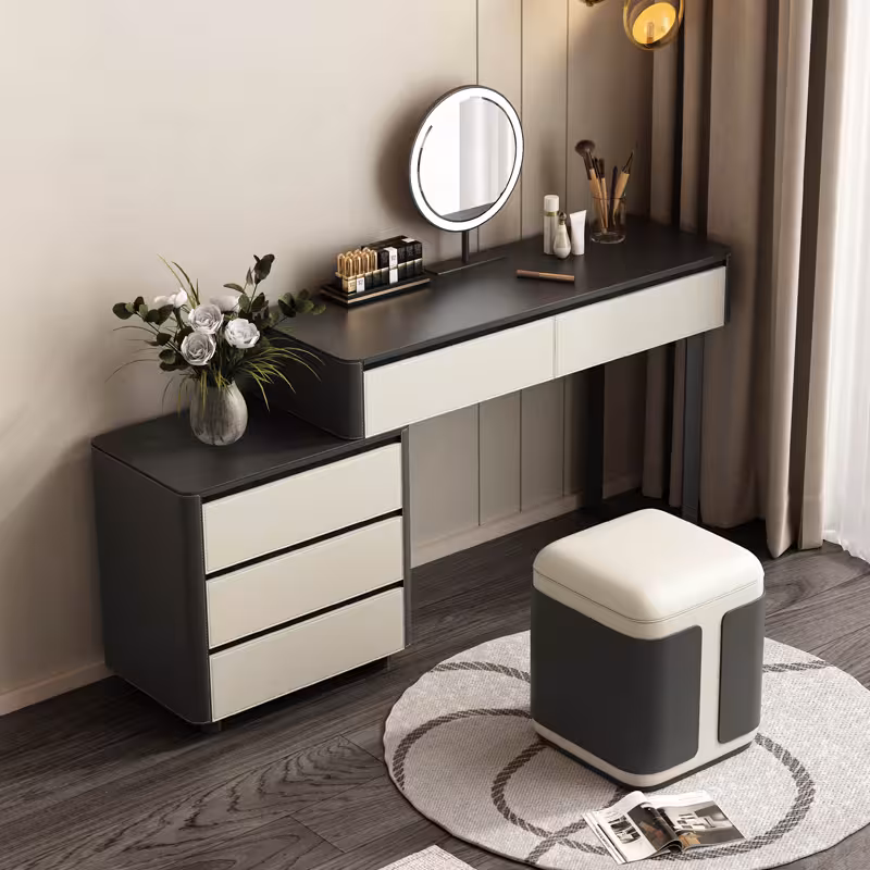 現代梳妝枱完美融合了時尚與實用,其簡約設計不僅提升了空間的美感,還提供了充足的收納空間,方便整理化妝品和配件,無論是早晨的化妝時光,還是夜晚的保養儀式,這款妝台都能提供您舒適的體驗,幫助輕鬆展現自信魅力。
