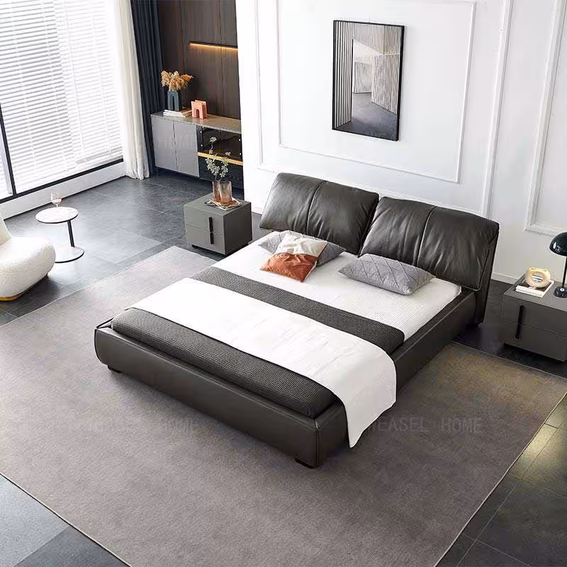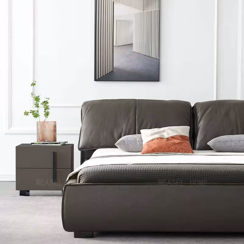 Modern Bedroom Design – A Perfect Blend of Elegance and Comfort Experience a serene and luxurious retreat with our modern bedroom design. The refined bed frame pairs seamlessly with the stylish nightstands, creating a harmonious space that exudes sophistication. Whether bathed in the soft glow of morning light or embraced by the calm of nightfall, this bedroom offers an unparalleled sense of relaxation and elevates your lifestyle. Choose this modern bed frame and transform every night into a lavish indulgence.