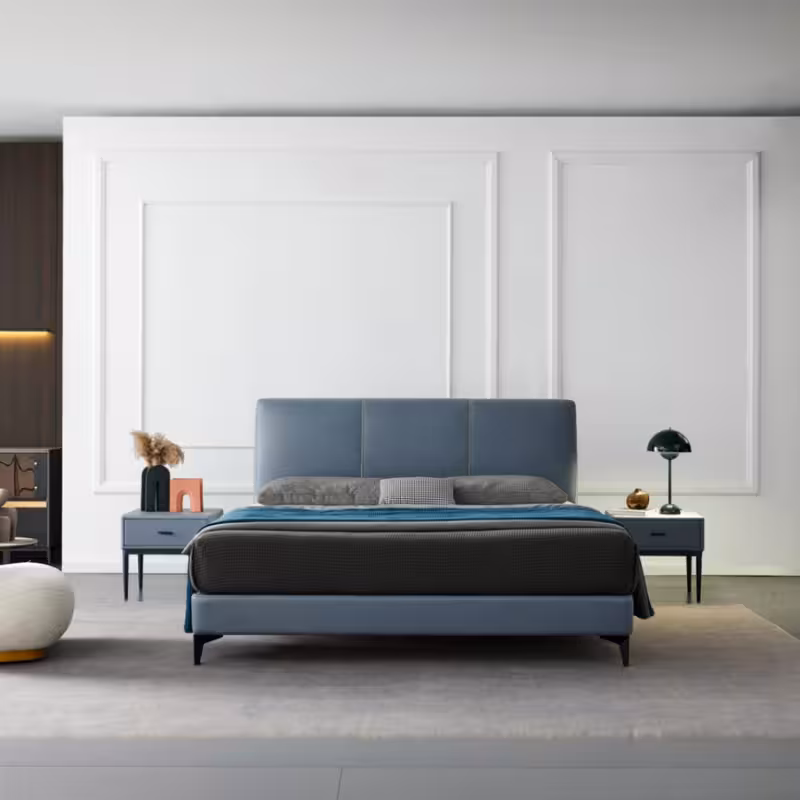 Modern Bedroom Design – A Perfect Blend of Elegance and Comfort Experience a serene and luxurious retreat with our modern bedroom design. The refined bed frame pairs seamlessly with the stylish nightstands, creating a harmonious space that exudes sophistication. Whether bathed in the soft glow of morning light or embraced by the calm of nightfall, this bedroom offers an unparalleled sense of relaxation and elevates your lifestyle. Choose this modern bed frame and transform every night into a lavish indulgence.