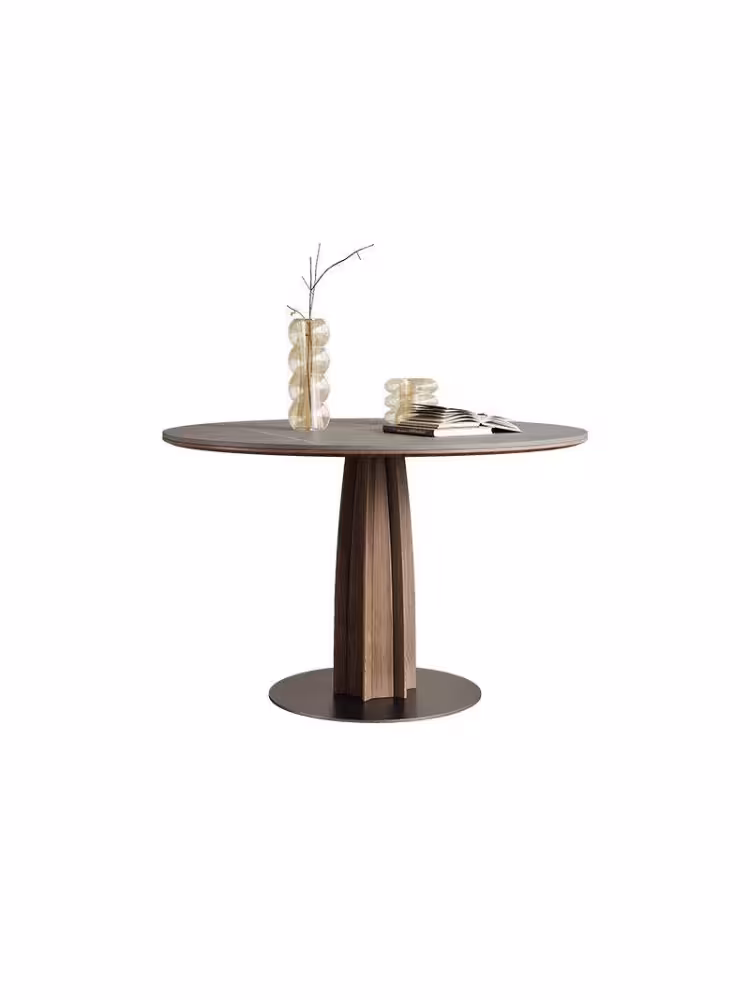 Eliza-Round Slate Dining Table with Pen-shaped Foot