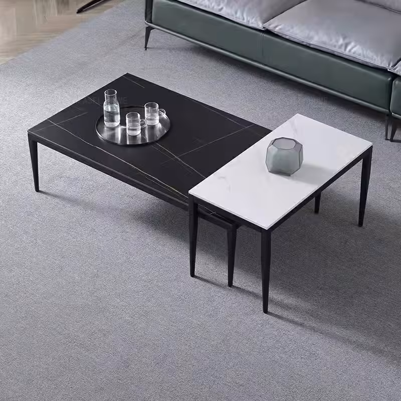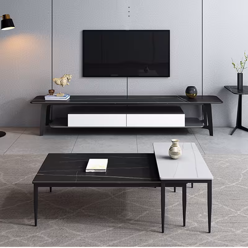 茶几的完美組合,為您的客廳增添了一抹奢華氣息,岩板表面散發出優雅的光澤,耐磨且易於清潔,無論是日常使用或接待賓客,這套茶几都將成為您家居的亮點,提升空間的品味與風格。