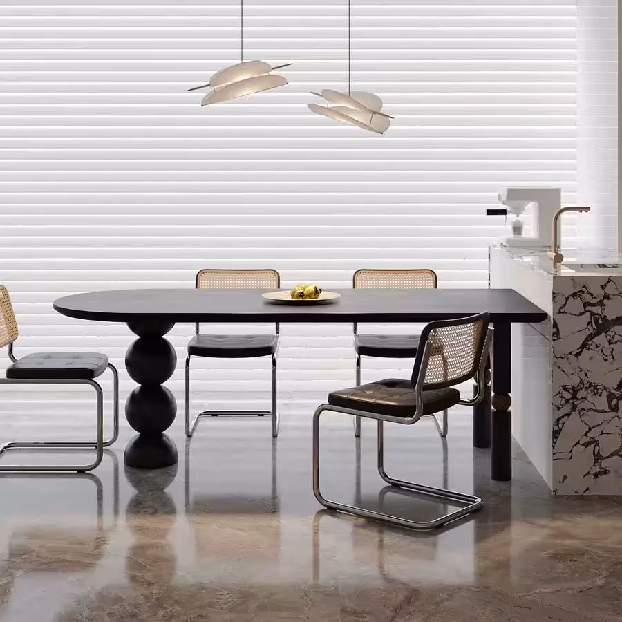 這款現代餐枱展現出簡約優雅的風格,簡約的設計讓空間顯得寬敞明亮,圓形桌面不僅提供了充足的用餐空間,還能讓每位用餐者都能輕鬆交流,營造出溫馨的用餐氛圍,高品質的材料和精緻的工藝確保了耐用性與舒適性,是你家庭聚餐和朋友聚會的最理想選擇!