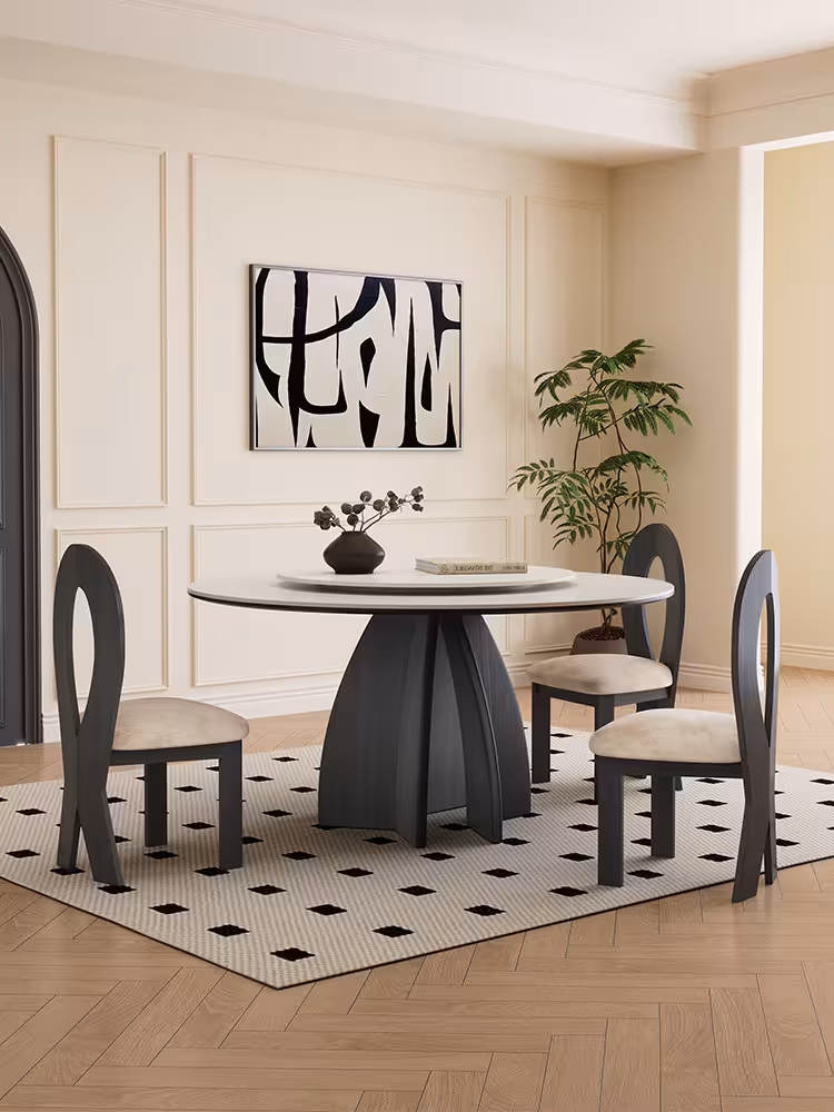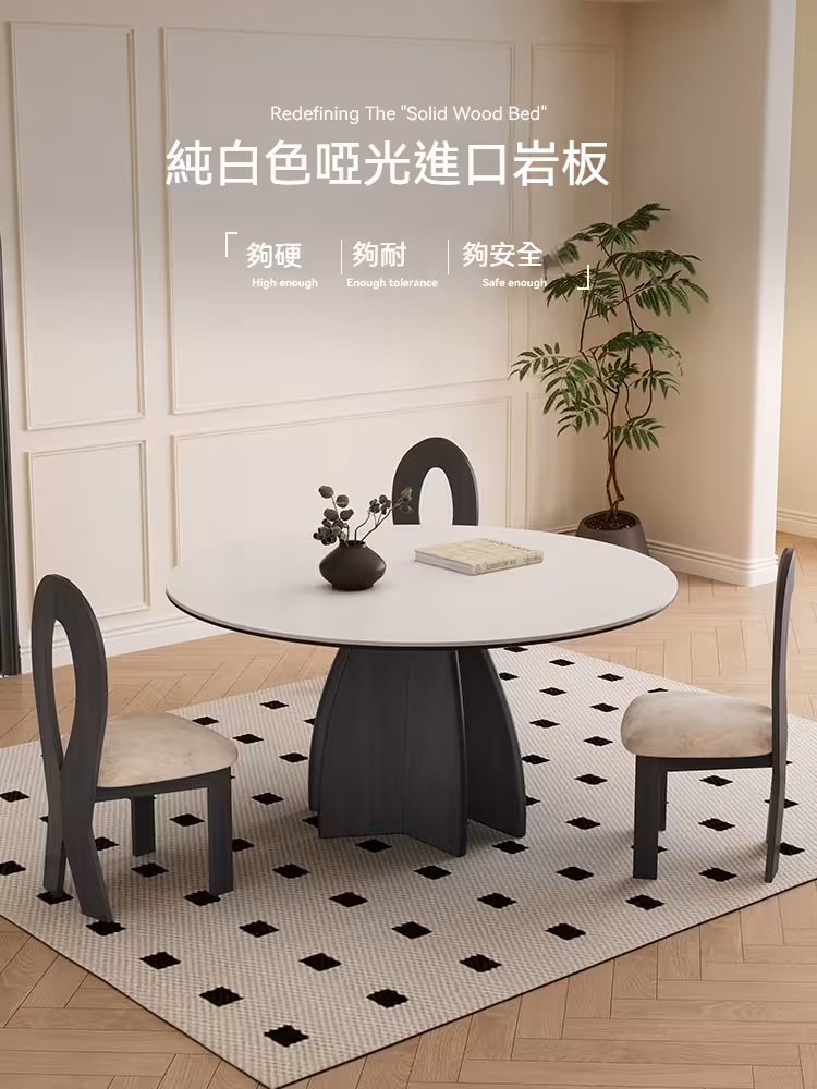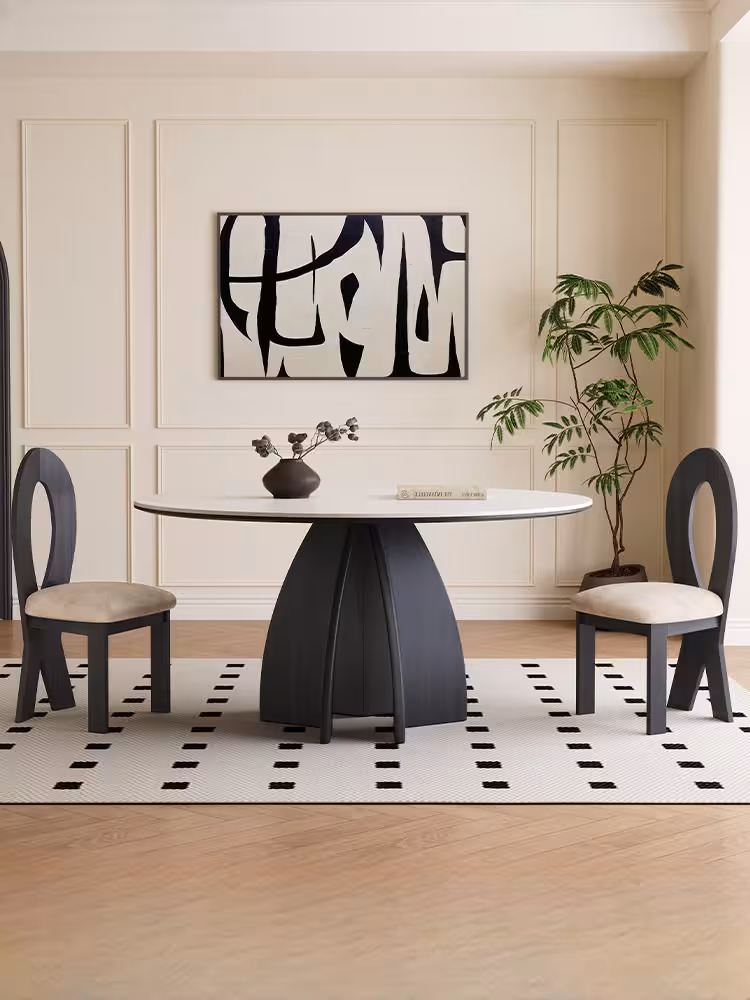 這款現代餐枱展現出簡約優雅的風格,簡約的設計讓空間顯得寬敞明亮,圓形桌面不僅提供了充足的用餐空間,還能讓每位用餐者都能輕鬆交流,營造出溫馨的用餐氛圍,高品質的材料和精緻的工藝確保了耐用性與舒適性,是你家庭聚餐和朋友聚會的最理想選擇!