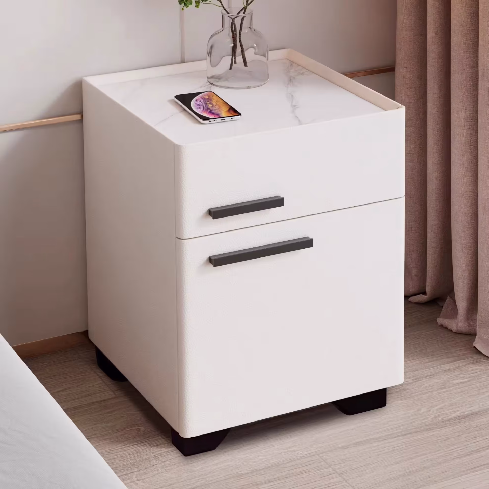這款床頭櫃以其簡約而優雅的設計,為您的臥室增添了一絲奢華感,配備實用的抽屜,提供充足的收納空間,方便您整理手機、眼鏡或其他小物,無論是現代或經典風格的居家環境,這款床頭櫃都能完美融入,讓您的空間既美觀又實用。