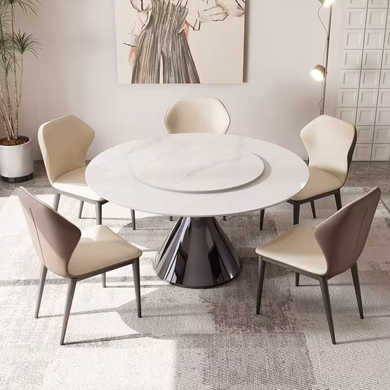 Natalie-Round Turntable Marble/Rock Dining Table