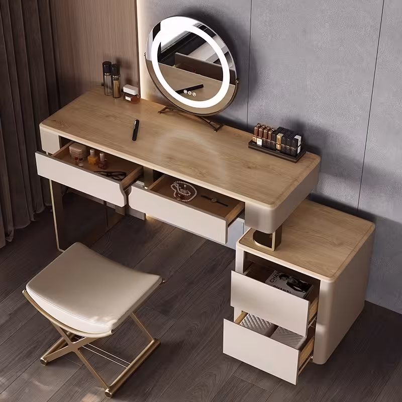 現代梳妝枱完美融合了時尚與實用,其簡約設計不僅提升了空間的美感,還提供了充足的收納空間,方便整理化妝品和配件,無論是早晨的化妝時光,還是夜晚的保養儀式,這款妝台都能提供您舒適的體驗,幫助輕鬆展現自信魅力。