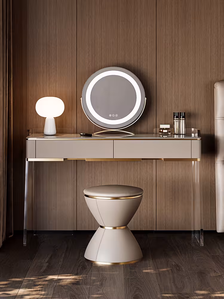 現代梳妝枱完美融合了時尚與實用,其簡約設計不僅提升了空間的美感,還提供了充足的收納空間,方便整理化妝品和配件,無論是早晨的化妝時光,還是夜晚的保養儀式,這款妝台都能提供您舒適的體驗,幫助輕鬆展現自信魅力。