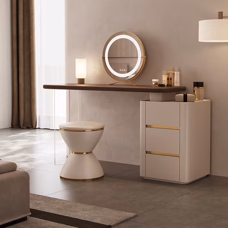 現代梳妝枱完美融合了時尚與實用,其簡約設計不僅提升了空間的美感,還提供了充足的收納空間,方便整理化妝品和配件,無論是早晨的化妝時光,還是夜晚的保養儀式,這款妝台都能提供您舒適的體驗,幫助輕鬆展現自信魅力。