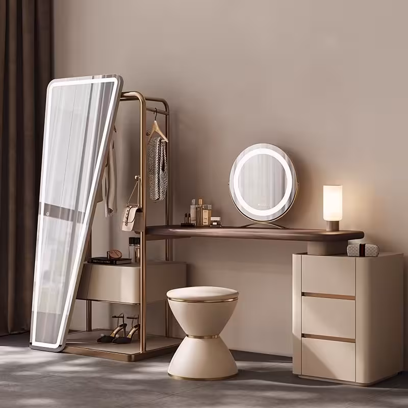 現代梳妝枱完美融合了時尚與實用,其簡約設計不僅提升了空間的美感,還提供了充足的收納空間,方便整理化妝品和配件,無論是早晨的化妝時光,還是夜晚的保養儀式,這款妝台都能提供您舒適的體驗,幫助輕鬆展現自信魅力。