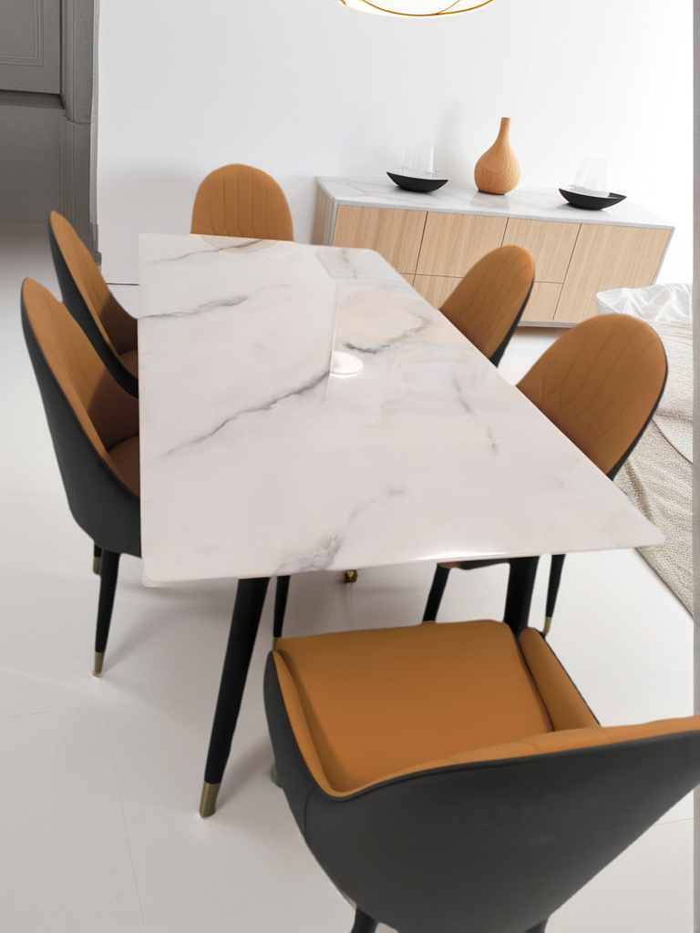 這款餐桌搭配精美椅子和優雅花瓶,完美詮釋了奢華與品味的結合,表面光滑,散發出獨特的光澤,耐磨且易於清潔,確保長久使用,花瓶則為整體增添了一抹生機,適合各種家居風格,讓您的餐廳瞬間提升風格,選擇這款餐桌,享受高端生活的每一刻!