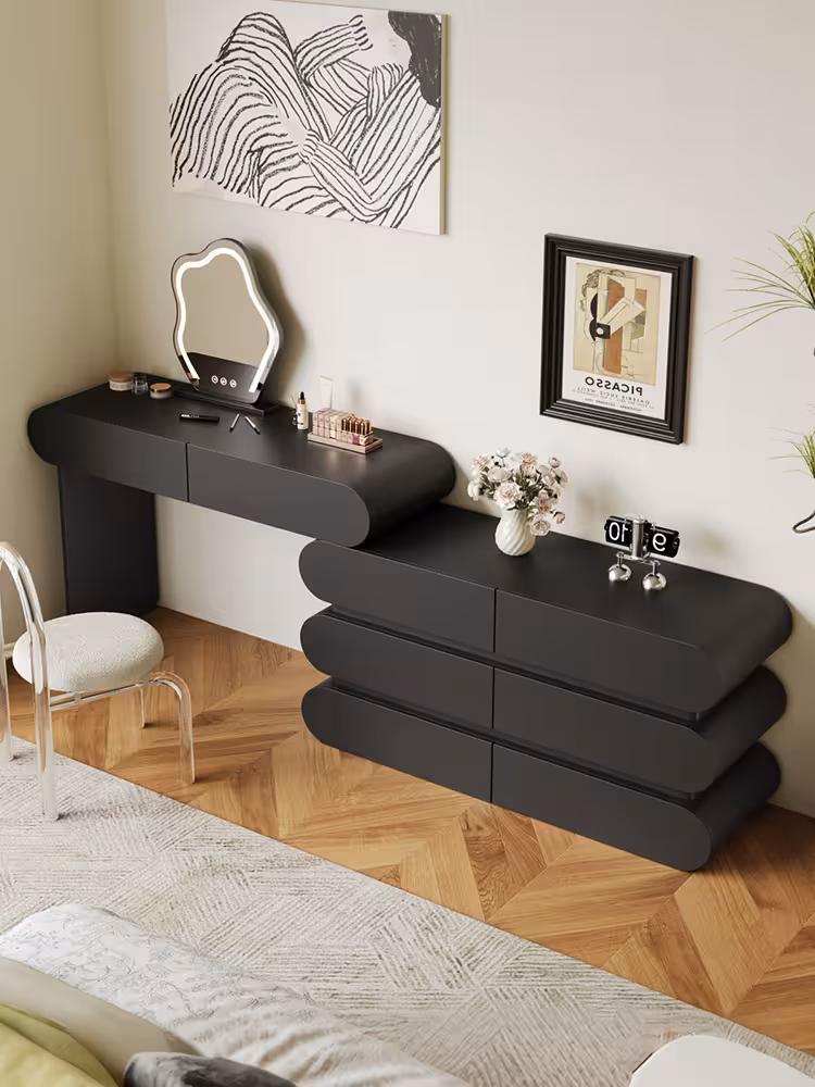 現代梳妝枱完美融合了時尚與實用,其簡約設計不僅提升了空間的美感,還提供了充足的收納空間,方便整理化妝品和配件,無論是早晨的化妝時光,還是夜晚的保養儀式,這款妝台都能提供您舒適的體驗,幫助輕鬆展現自信魅力。