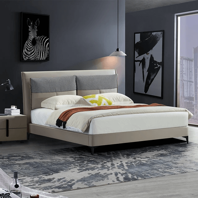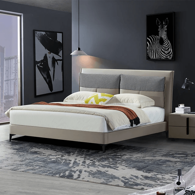 皮革床架-這款床的床頭採用人體工學設計,倚靠的時候更貼合我們人體曲線,更舒適,靠在窗扇前看書玩手機的時候,腰部和頸部都能得到足夠且舒適的支撐。