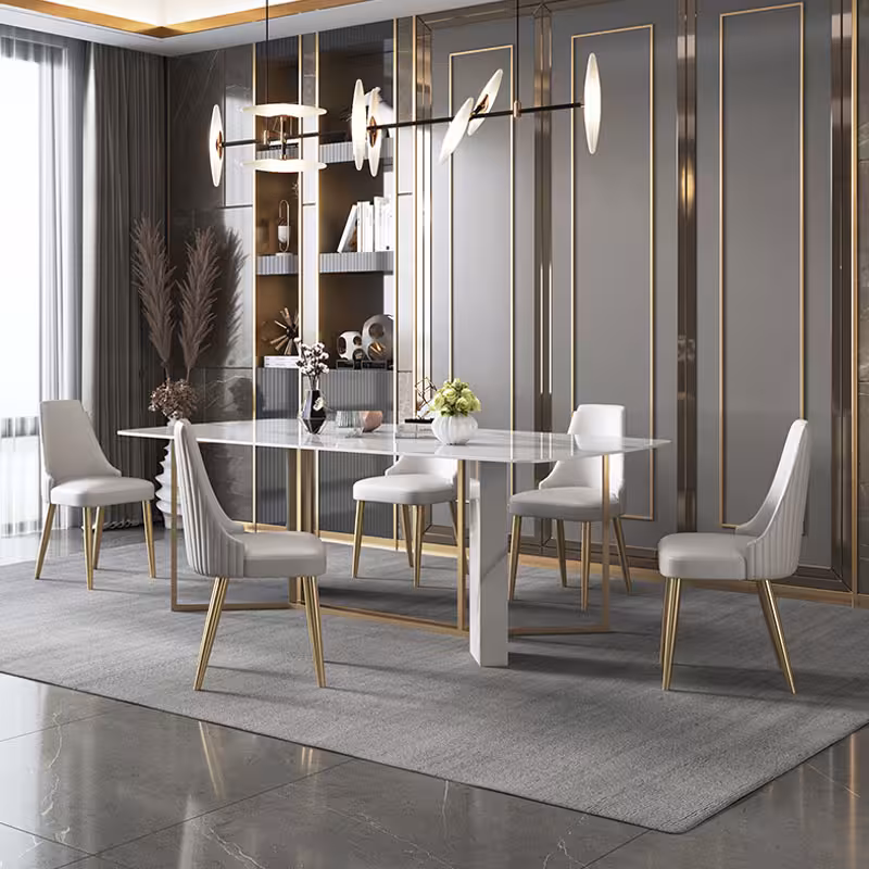 這款餐桌搭配精美椅子和優雅花瓶,完美詮釋了奢華與品味的結合,表面光滑,散發出獨特的光澤,耐磨且易於清潔,確保長久使用,花瓶則為整體增添了一抹生機,適合各種家居風格,讓您的餐廳瞬間提升風格,選擇這款餐桌,享受高端生活的每一刻!