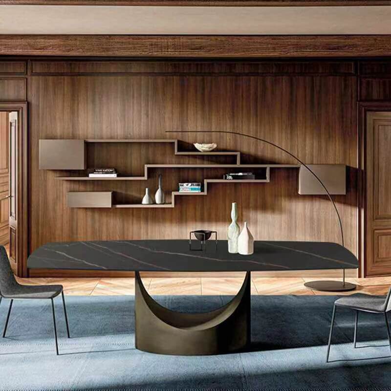 桌面 : 岩板/大理石 桌腳 : 金屬 設計 : 藝術凸造型設計 岩板顏色 : 雪山白/阿瑪尼灰/勞倫白金/勞倫黑金 大理石顏色 : 中花白/爵士白/咖啡網/黑白根