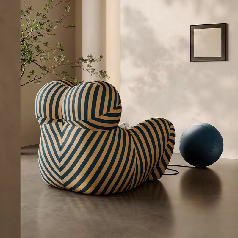 材料: 優質布藝 設計: 寛大圍繞的綫線設計 支架: 定型綿支撐 椅子: 103*90*92(中號) 椅子: 117*102*95(大號) 圓球: 43*43*43
