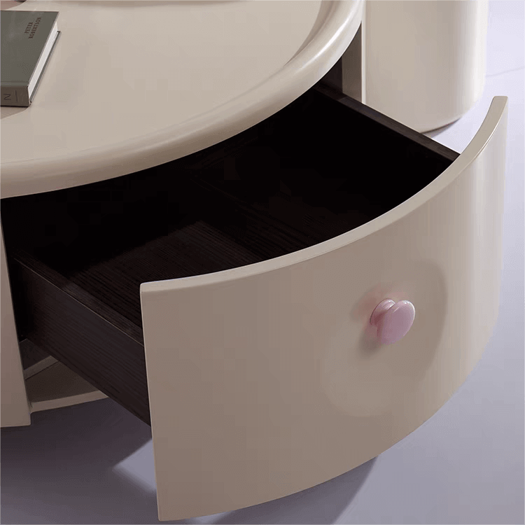 材料:板材+奶白色櫃身+粉色實木拉手 台面:厚實置物台面 設計:小巧可愛邊櫃 顏色:奶油白色