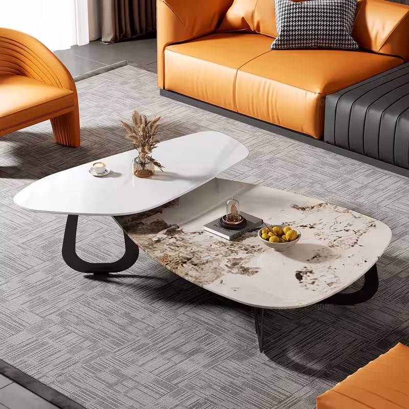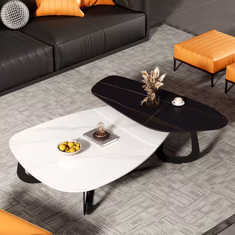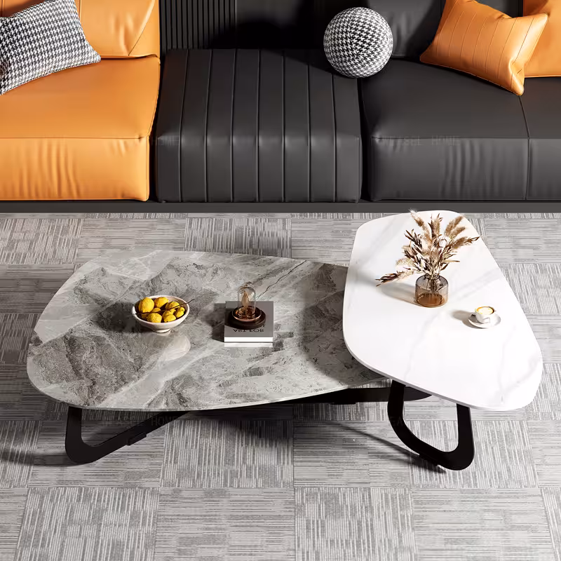 茶几的完美組合,為您的客廳增添了一抹奢華氣息,岩板表面散發出優雅的光澤,耐磨且易於清潔,無論是日常使用或接待賓客,這套茶几都將成為您家居的亮點,提升空間的品味與風格。