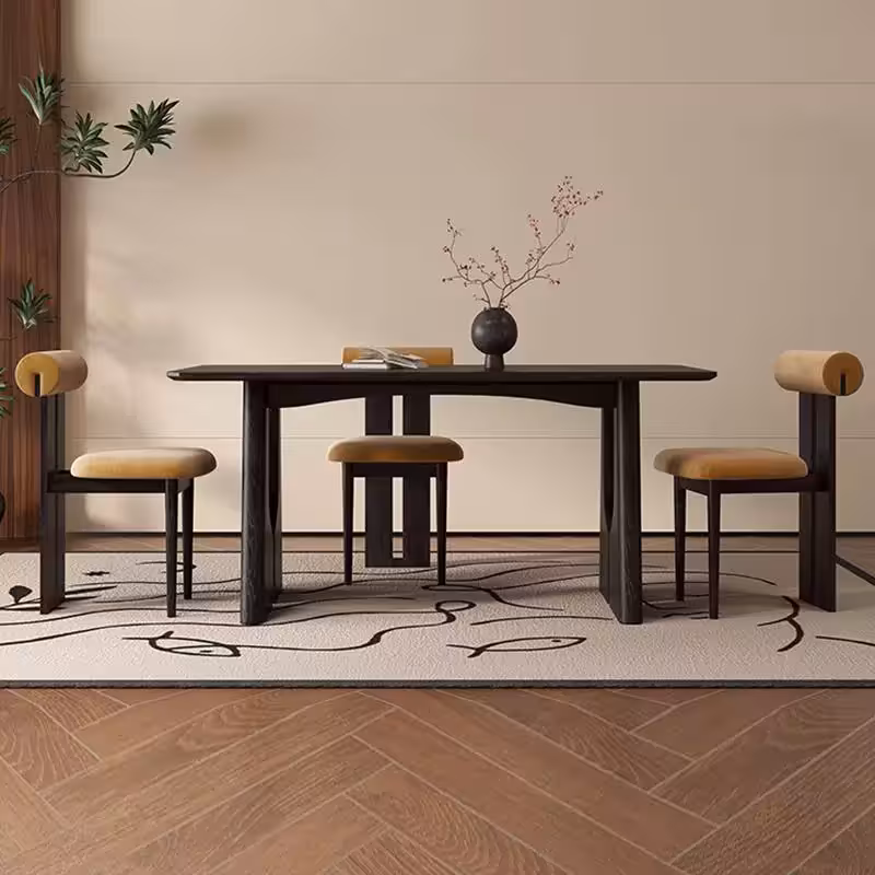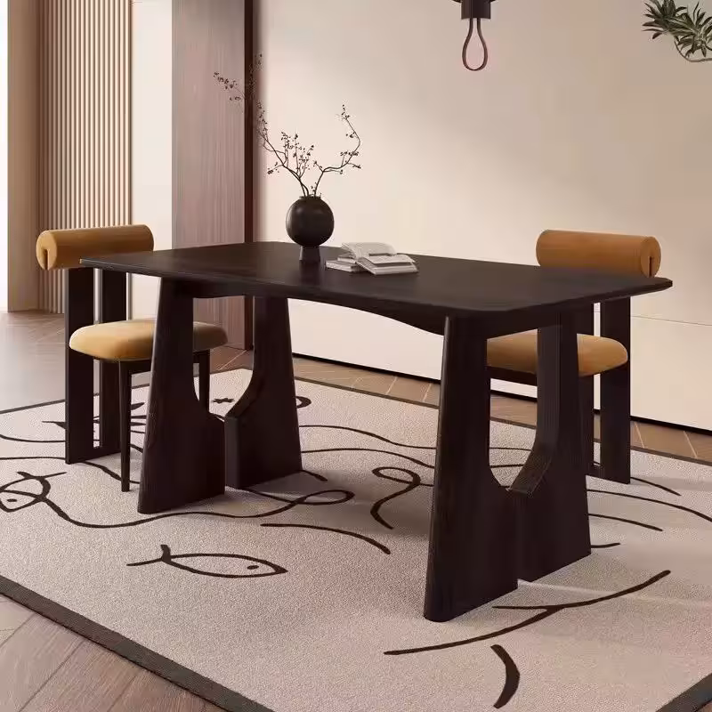 桌面 : 岩板 桌腳 : 白蠟木 設計 : 極簡之美 顏色 : 黑色/胡桃色