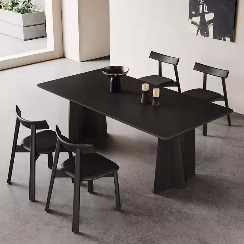 桌面 : 岩板 桌腳 : 白蠟木 設計 : 極簡之美 顏色 : 純黑色/純白色