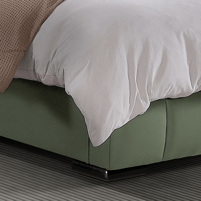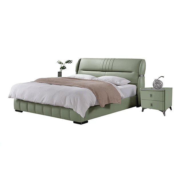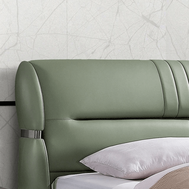 皮革床架-這款床的床頭採用人體工學設計,倚靠的時候更貼合我們人體曲線,更舒適,靠在窗扇前看書玩手機的時候,腰部和頸部都能得到足夠且舒適的支撐。