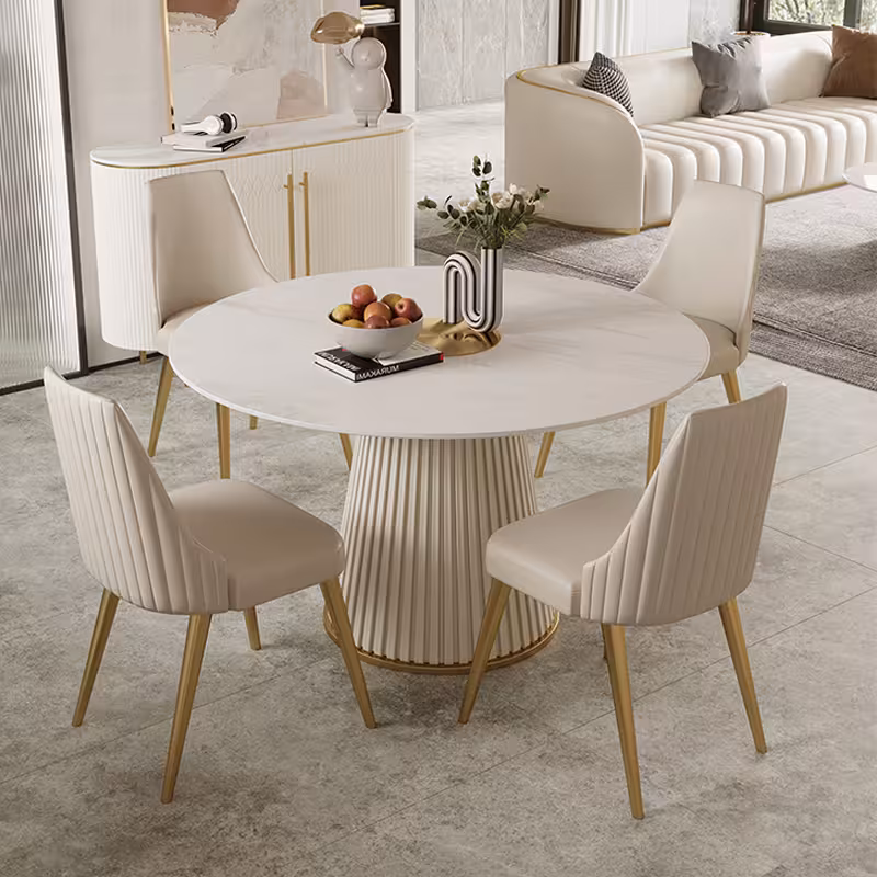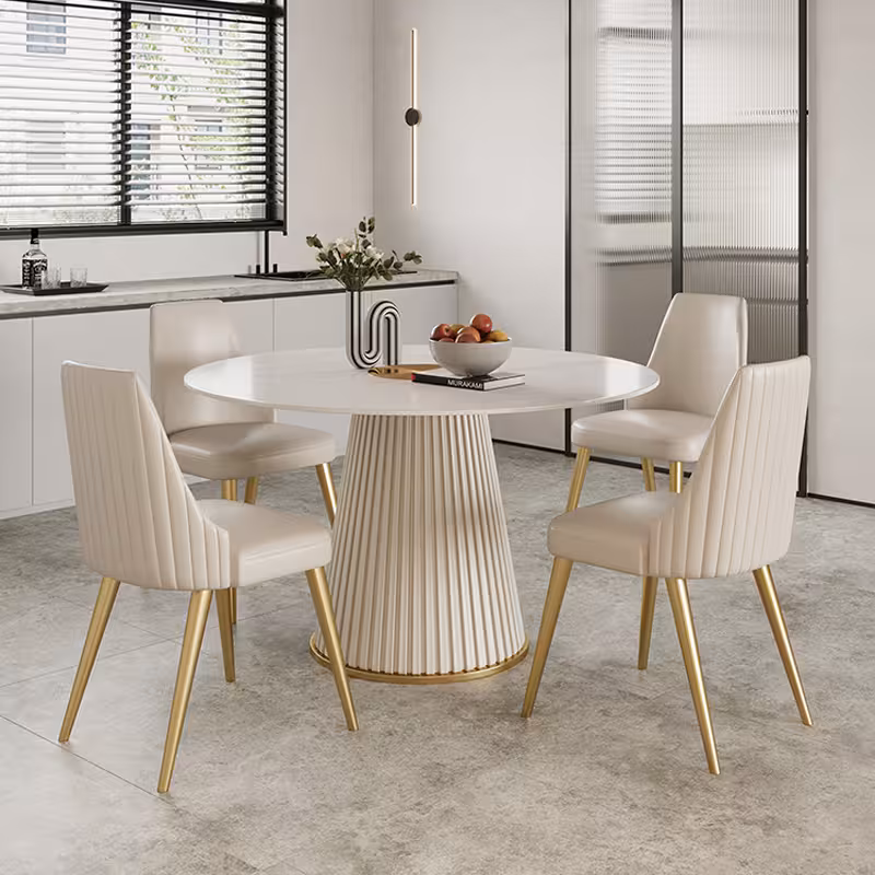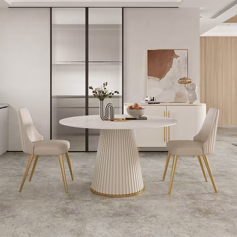 桌面 : 岩板/大理石 桌腳 : 捫皮鍍金底架 設計 : 羅馬圓形柱腿 顏色 : 白色花紋