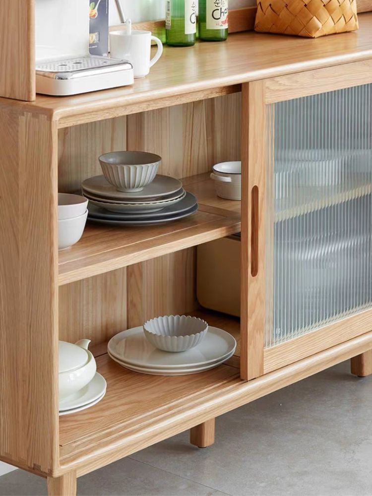 此餐邊櫃選用實木製作,天然紋理,堅固耐用,其圓潤的外形,流暢的曲線設計,配以高挑粗腿,告別你的收納煩惱,成為你的收納好管家,帶來理想的家居好體驗